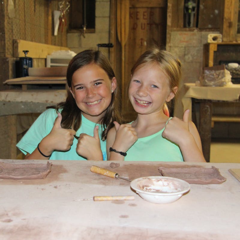 Campers master pottery by beginning with the simplest pinch and coil pots and eventually learning to throw pots, mugs and bowls on the potter’s wheel.